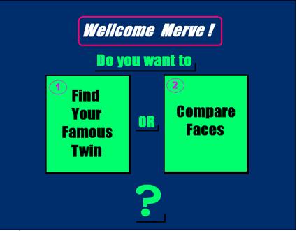 The user may choose to compare a face with another face. He sees how much the faces resemble each other. He may provide photos or he may choose to enter the names of the people he wants to compare. If any image belonging to the given names is found in the database, then the comparison will be performed.