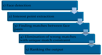 In this project, we use Lowe’s Sift keypoint detector (see Appendix A) to extract the interest points of the face images. This method takes two image files as input and extracts the interest points of these image files. Then, it performs a match point detection (see Appendix A) for the extracted interest points. Figure.1 shows the working process of this method.