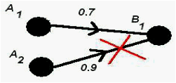 On the other hand, if two points are matched with one point such as A1 & A2 then one of them should be eliminated as shown in Figure.3.4-2. In this case, values that are calculated by Euclidean distances are used to eliminate them. Smaller distances are preferred for better matching between face pairs.