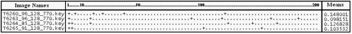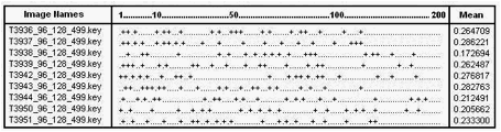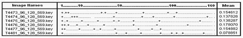 Consequently, unique match constraint definitely improves matches between face pairs and eliminates poor matches. As it can be seen from Figure.3d-3, remaining matches are almost horizontal and reasonable matches such as eye-to-eye, nose-to-nose, lip-to-lip etc. After poor matches have been eliminated, average mean for each face is calculated by using averages of remaining matches.