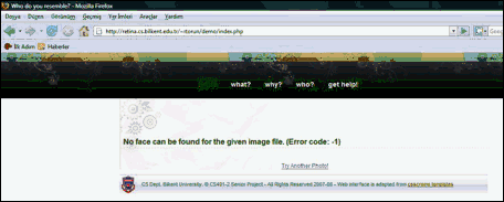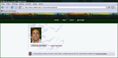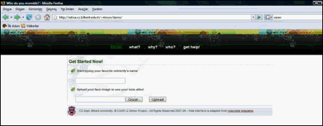 The final product of our system is really easy to use. It is available on the internet from the address: retina.cs.bilkent.edu.tr/~rtorun/demo. Figure.B-1 shows the starting page:
