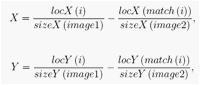 and locX and locY hold X and Y coordinates of the feature points in the images, sizeX and sizeY hold X and Y sizes of the images and match(i) corresponds to the matched keypoint in the second image of the ith feature point in the first image [18].